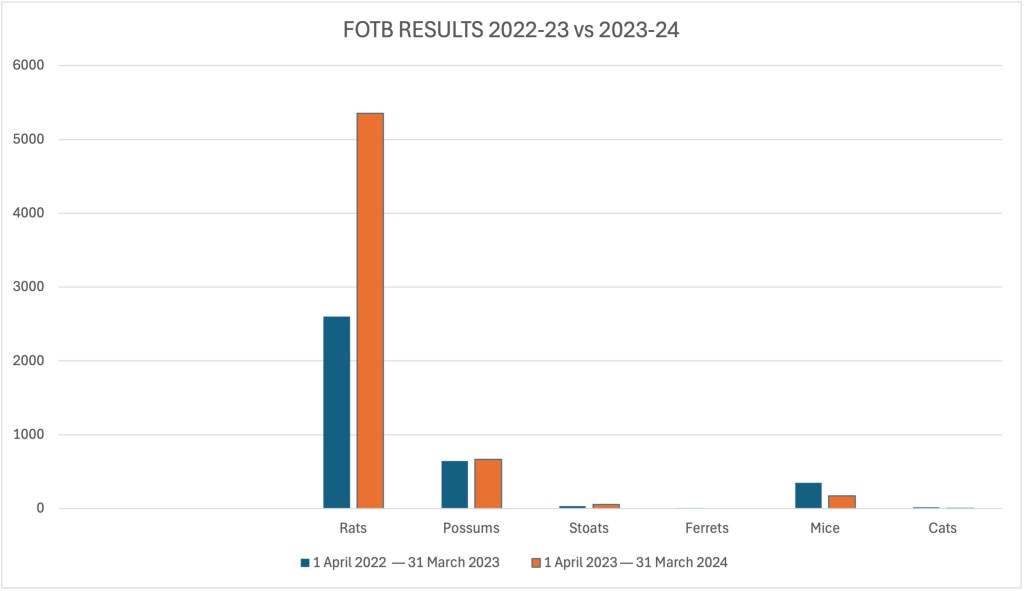 In early May this year, we made an AT220 line through the middle of our trapping area (you can see it crossing the trapping area in the second map image above), partly to monitor how well we’re doing on the interior lines and also to catch trap-shy vermon. We checked these traps in July after 5 weeks, and only one possum was counted. All zeros on almost every trap. This is very very rare with ATs, which nearly always have solid kill counts, and we take it as an unequivocal endorsement of our AT perimeter of death and relentless interior manual trapping.