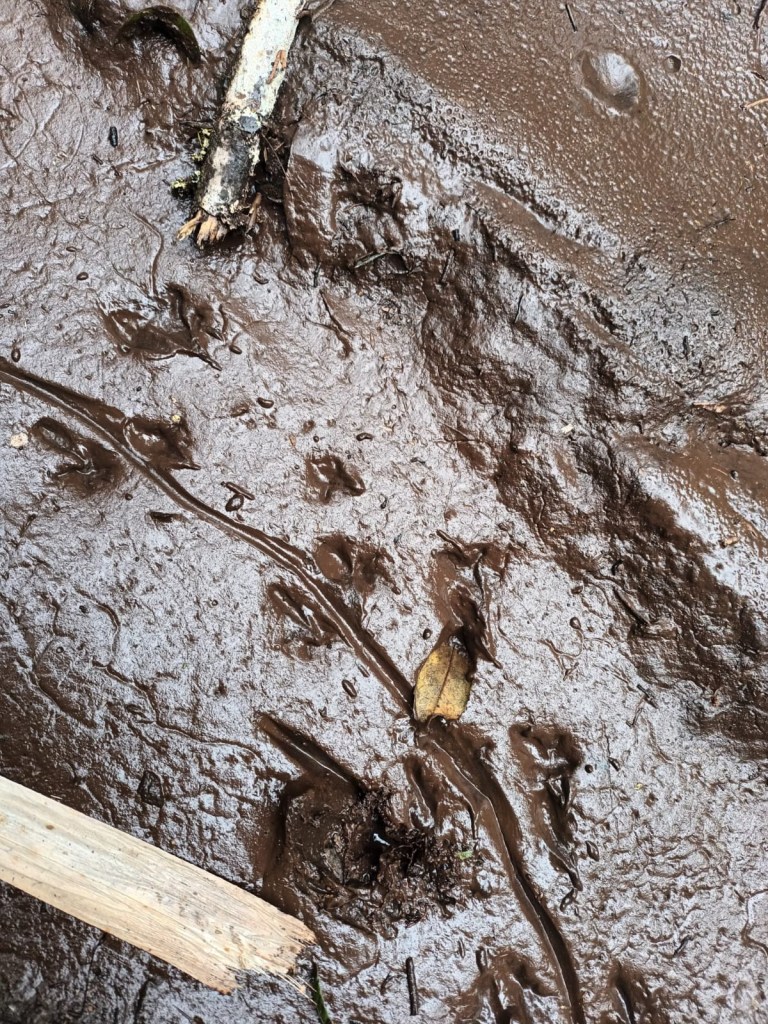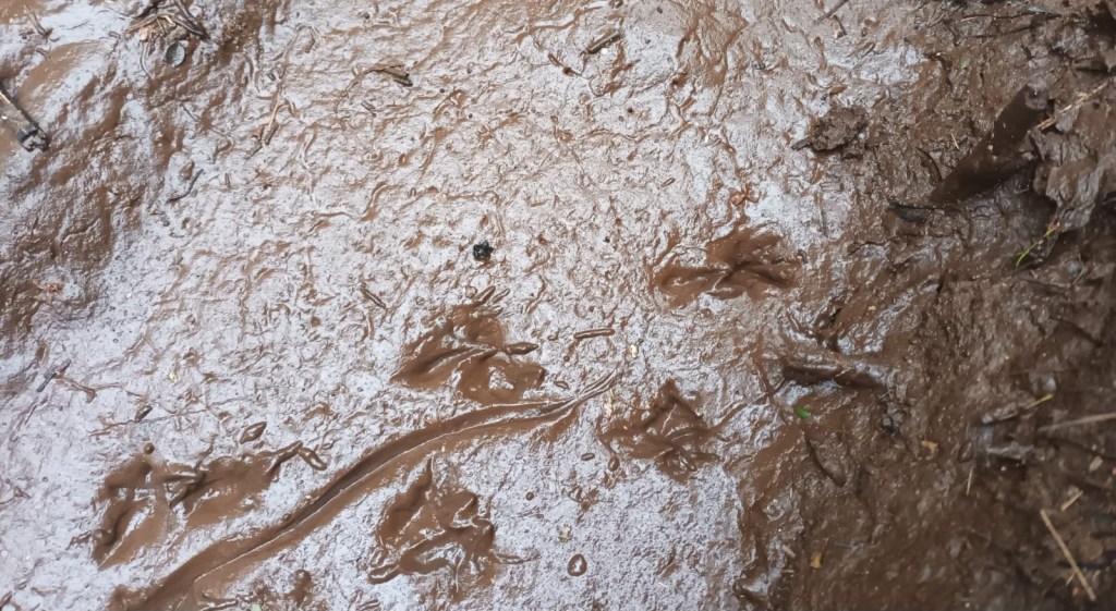 When I saw unusual tracks in soft mud out west of our trapping zone, near Line 18, I hoped it might be a forest gecko. I looked up all the images I could find of gecko tracks but could only find the marks they left on hard tracking cards. But I did find a wonderful thing — a herpetologist called Dr Dylan van Winkle who loves all things reptilian and froggy. He looked at my photos and decided, sadly for me, that it was a rat that made the tracks, after all.
