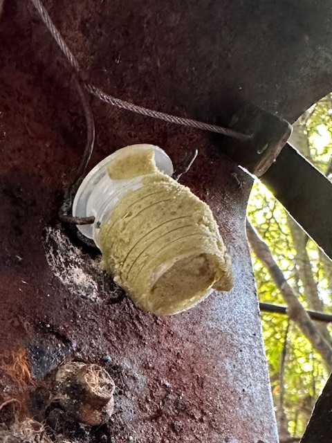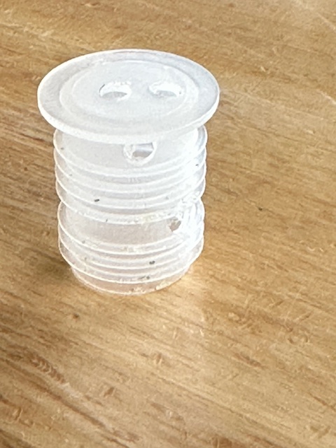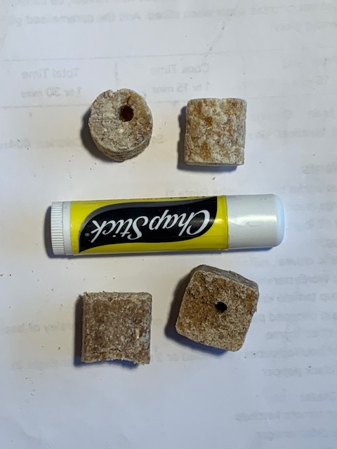When supplier Connovation stopped providing the round corks, Rolly decided to try a wine cork. He initially used one of the plastic corks, drilled a hole thru it, cut it in half, smeared it with green lure, and put it into a Warrior trap. On his first use, the only Warrior that caught a possum was one in which he’d deployed a wine cork.