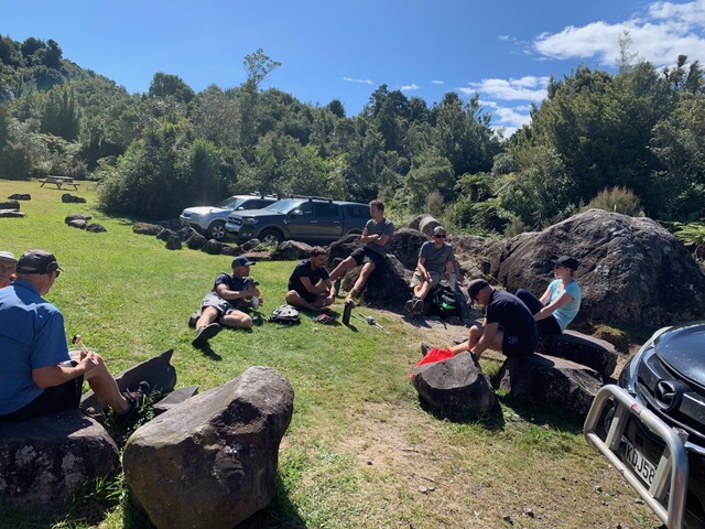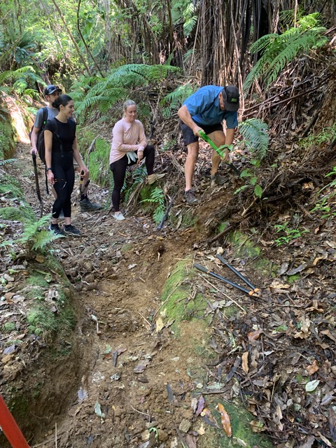 • Steps were cut into steep and slippery sections of the ATV/4-WD track that leads up to/down from the plateau lines (8-17). Crew led by Stephen TJ • Blackberry cleared at start of Ngāmarama track; large mats of African club moss cleared from start of Pā Kererū walk (leading to Ngāmarama); pampas trimmed along part of of L6 through wetland. All-woman crew led by Alison • East-West access track (from Line 19-23) cleared. Crew led by Rolly. • Southeastern access track (to around ATS 22, 23) cleared. Crew led by Keith.