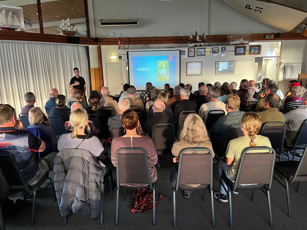 John Bissell speaking at Tauranga Yacht Club at an event organised by Bay Conservation Alliance. (Pic from BCA Facebook page)