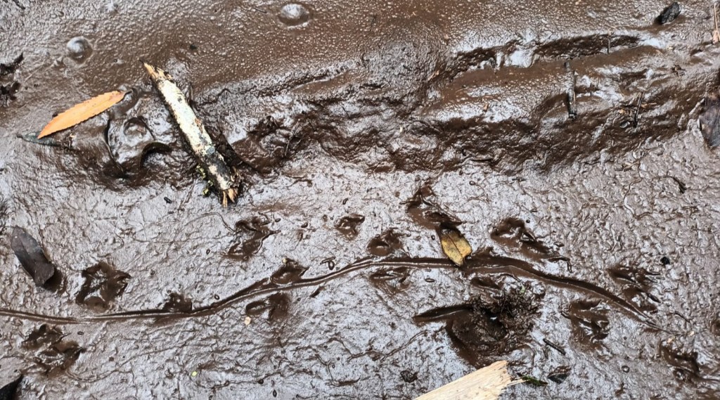When I saw unusual tracks in soft mud out west of our trapping zone, near Line 18, I hoped it might be a forest gecko. I looked up all the images I could find of gecko tracks but could only find the marks they left on hard tracking cards. But I did find a wonderful thing — a herpetologist called Dr Dylan van Winkle who loves all things reptilian and froggy. He looked at my photos and decided, sadly for me, that it was a rat that made the tracks, after all.