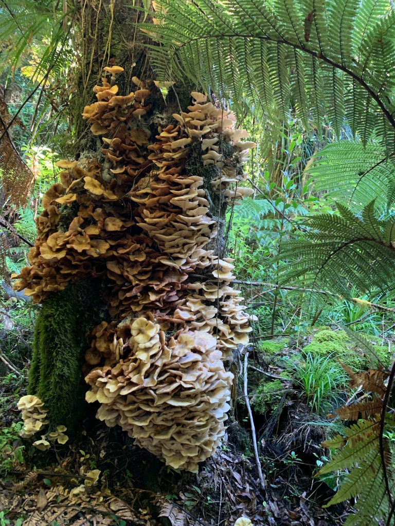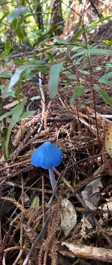 Blue Pinkgill, or werewere-kōkako, a native mushroom, and according to Wikipedia, the only mushroom in the world that features on a banknote, appearing on the NZ $50 alongside their namesake the kōkako. Credit: Steve Nicholson